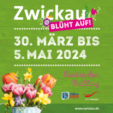 „Bunt in den Frühling“ lautet das Motto der diesjährigen Frühjahrsaktion „Zwickau blüht auf“. Die beliebte Gemeinschaftsaktion der Innenstadt-Händler und Zwickauer Unternehmen startet in diesem Jahr am Osterwochenende, nämlich am kommenden Samstag, dem 30. März 2024. Bunte Blumen und frühlingshafte Dekorationen schmücken bis zum 5. Mai die Zwickauer Innenstadt.