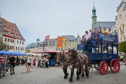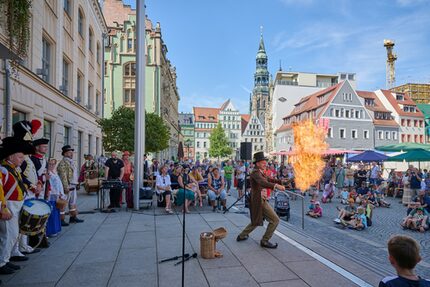 Den besonderen Charakter des Marktes prägten aber auch die Künstler. Mit ihren Programmen aus Kleinkunst, Zauberei, Theater, Musik und Artistik sind sie auf allen drei Plätzen unterwegs: Ob Duo Pampatut, Biedermanns Bänkelsang, Narrateaus Zauberkunst oder aber Marionettenspiel und Moritatengesang - all das im Zusammenspiel mit den wunderbaren Händlern, die ihre Stände der Veranstaltung passend dekorieren und handgefertigte Waren bieten, machen das Zwickauer Markttreiben aus.