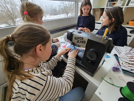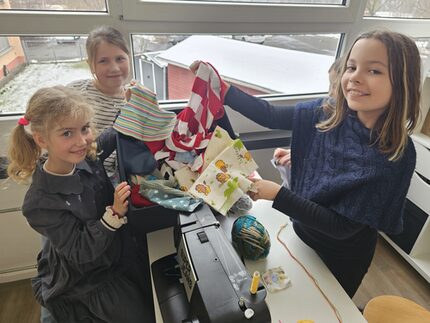 Genäht wurde auch schon einiges, u.a. Kissenbezüge und (einfache) Kuscheltiere. „Wichtig ist, dass Dinge umgesetzt werden, die die Fähigkeiten der Kids nicht übersteigen, sonst ist es schnell vorbei mit der Lust am Nähen.“ erklärt die Hortleiterin. „Deshalb wird auch zukünftig Wert auf einfache Nähprojekte mit schnellen Erfolgserlebnissen für die Kids gesetzt. Das können beispielsweise Beutel, Haargummis, Kräuterkissen und Wimpel-Ketten sein.“