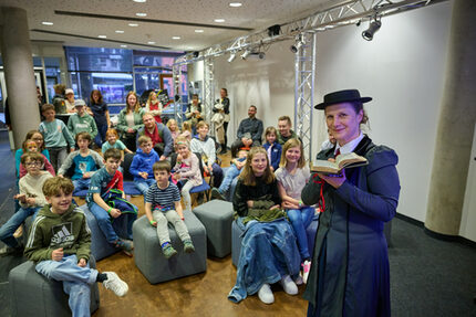 Interaktiv ging es auch im Schüler-Lab der Westsächsischen Hochschule zu, die in diesem Jahr ihre Premiere bei der Zwickauer Kindermuseumsnacht gab: Leander Hummel und Paul Kirchhoff – unfreiwillig im Jahr 2025 gelandet – ließen sich von den Kindern die Welt erklären und konnten so mit ihrer Hilfe die Westsächsische Hochschule zur bekanntesten Technischen Hochschule Deutschlands machen. Die zweite Einrichtung, die das erste Mal Teil der Kindermuseumsnacht war, ist das Zwickauer Puppentheater. „Kannst Du pfeifen, Johanna“ war der Titel der Mitmachlesung, die stündlich sowohl im Puppentheater als auch im Saal der Stadtbibliothek stattfand. Beide Orte waren gut besucht und sorgten für leuchtende Kinderaugen.