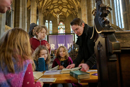 In der Leseecke der Kinderbibliothek entführte Dr. Lutz Mahnke – Leiter der Ratsschulbibliothek – in ein weiteres Kapitel der Stadtgeschichte: Martin Römer, einst reichster Mann Sachsens und Erbauer des Kornhauses, war der Dreh- und Angelpunkt in den Sagen und Geschichten, die es zu hören gab. Unter dem Slogan „Wenn einer eine Reise tut…“ lud die Ev.-Luth. Stadtkirchgemeinde zu einer Pilgerreise durch den Dom St. Marien ein. Kombiniert war das mit kleinen Aufgaben und Rätseln – als Belohnung gab es ein Andenken an die Pilgerreise in Form von einer Jakobsmuschel, die eine süße Füllung hatte.