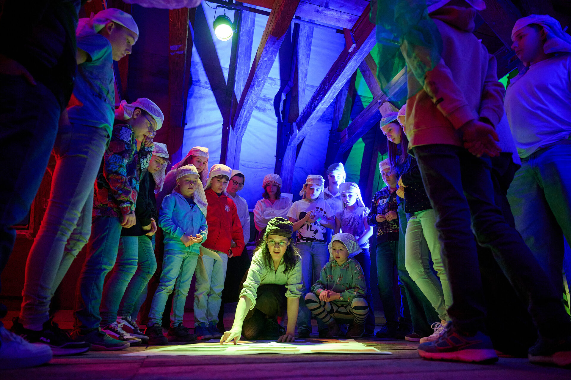 Großes Interesse bei kleinen Feuerwehrfans weckte die aktuelle Sonderausstellung der Priesterhäuser, die die Geschichte der Zwickauer Berufsfeuerwehr zum Thema hat. Der passende Fotopoint, an dem jeder in eine Feuerwehruniform schlüpfen konnte, kam gut an. Darüber hinaus gab es ein spannendes Quiz durch die Dauerausstellung. Im Gewandhaus ging es in das 16. Jahrhundert. Dort wird damals noch nicht Theater gespielt, sondern die Zwickauer Tuchmacherzunft hat hier ihr Domizil. Doch plötzlich sind in den alten Mauern seltsame Geräusche zu vernehmen – was mag das sein? Dieser Frage spürten dreimal in jeder Stunde an die 15 kleine Stoffprüfer nach und erlebten ein interaktives Theaterstück aus der Zeit der Tuchmacher.