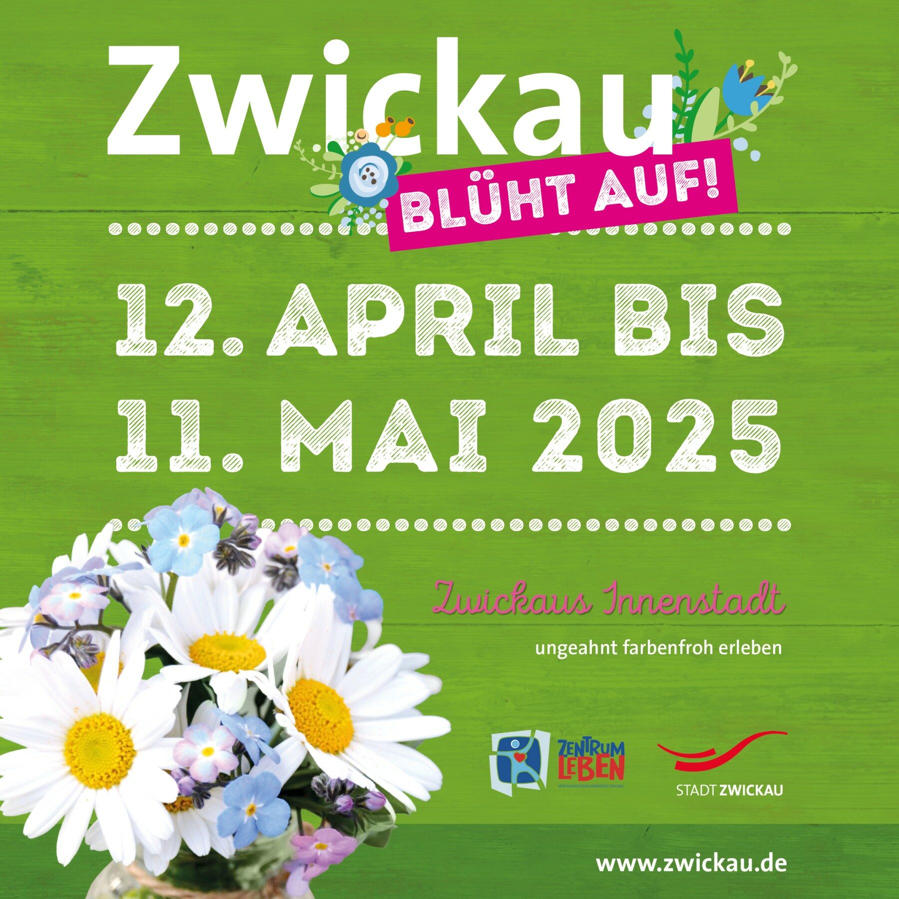 Offiziell eröffnet wird „Zwickau blüht auf“ am Samstag, dem 12. April um 11 Uhr an der Ecke Magazin-/ Innere Plauensche Straße. Mit einem musikalisch-bunten Bouquet wird durch Sängerin Ellen Haddenhorst-Lusensky dabei auch hörbar der Frühling geweckt. Übrigens: Händler, Gastronomen und Institutionen, aber auch Anwohner können sich gerne noch mit Blumendekorationen vor den Eingängen und in den Fenstern an der Gemeinschaftsaktion beteiligen. Wer größere Objekte aufstellen möchte, wendet sich bitte an das Amt für Wirtschaftsförderung (E-Mail: stadtmanagementzwickaude, Telefon 0375 838007).