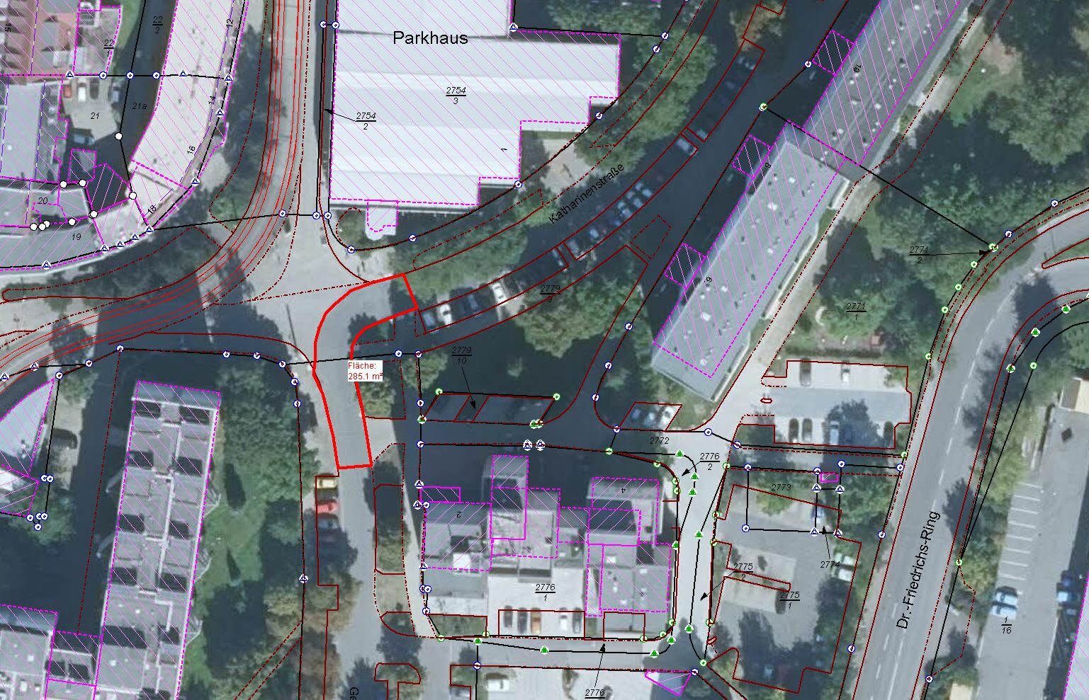 Das Tiefbauamt wird im Zuge der Erneuerung der Fernwärmetrasse im Stadtzentrum durch die ZEV im Kurvenbereich der Gewandhausstraße / Katharinenstraße den Asphaltoberbau auf ca. 50 m Länge mit erneuern. Die Straße weist in diesem Bereich Tragfähigkeitsschäden, Spurrinnen und alte, inzwischen schadhafte Aufgrabungen auf. Daher muss dieser Knotenpunkt von Dienstag, 22. April, bis voraussichtlich Mittwoch, 30. April, voll gesperrt werden. Die Zufahrt zum Parkhaus Zentrum erfolgt über die Katharinenstraße aus nördlicher Richtung. Eine entsprechende Umleitungsbeschilderung wird aufgestellt.