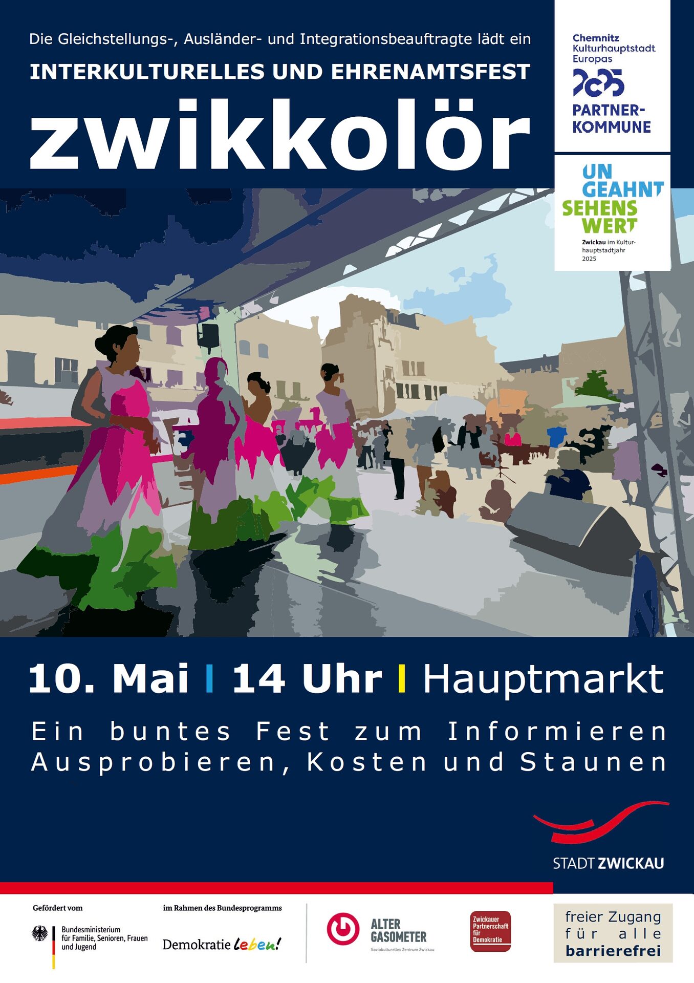 „zwikkolör“ ist eine Kooperationsveranstaltung des Büros der Gleichstellungs-, Ausländer- und Integrationsbeauftragten der Stadt Zwickau, der Integrationsberatungsstelle Zwickau und verschiedener Vereine, Initiativen und Institutionen aus Zwickau und dem Landkreis, unterstützt und gefördert durch das Programm „Demokratie leben!“.