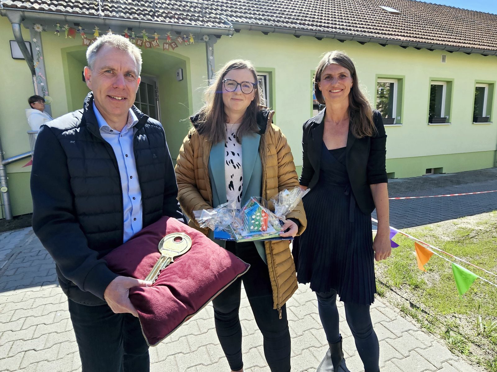 Carsten Gelfort (Geschäftsführer ASB Kreisverband Zwickau), Silvia Queck (Stadt Zwickau/Bürgermeisterin Bauen) und Katja Heinzig (Leiterin der Kita Planitzer Kinderwelt)
