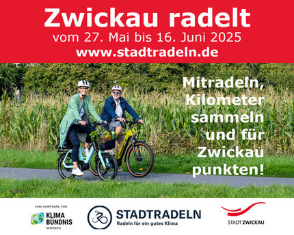 Ab Dienstag, 27. Mai 2025 darf wieder kräftig in die Pedale getreten werden. Die Stadt Zwickau beteiligt sich erneut am STADTRADELN, einem internationalen Wettbewerb des Klima-Bündnis Service. Hierbei gilt es, an 21 aufeinanderfolgenden Tagen möglichst viele Alltagswege mit dem Fahrrad zurückzulegen und die geradelten Kilometer für (s)ein Team und die Kommune zu sammeln.