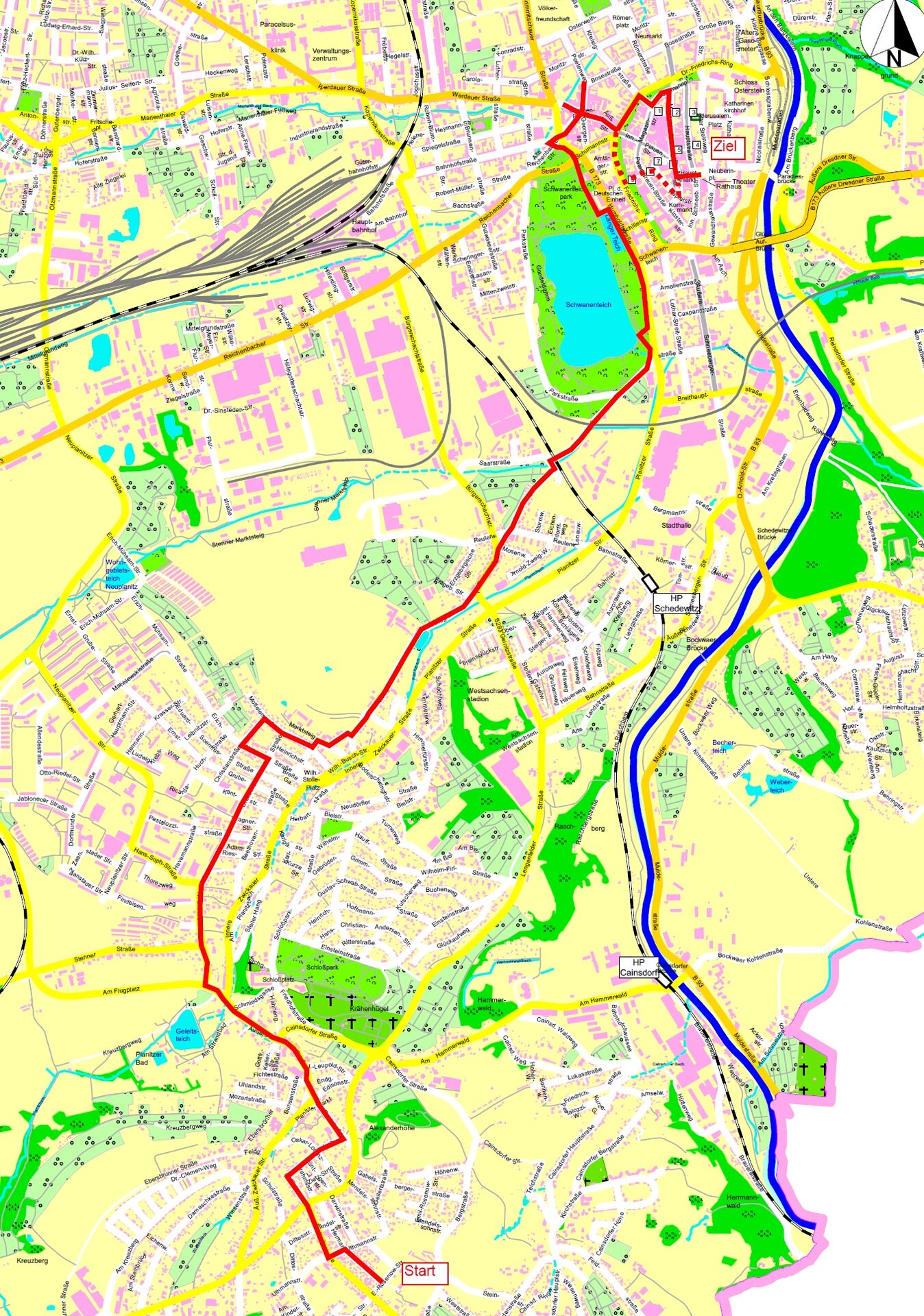 Start ist beim SV Planitz in der Emil-Rosenow-Straße. In der Herrmann- und der Freiheitsstraße wird zum Straßenbau sowie zu Haltestellen informiert. Danach führt die Tour zum Planitzer Markt, der bis 2026 saniert und umgestaltet wird. Weitere Zwischenziele sind beispielweise die Mottelerstraße, deren grundhafte Erneuerung im Sommer fortgesetzt werden soll, der Marktsteig oder die Bürgerschachtstraße, wo auf die geplante Deckensanierung und den Radfahrstreifen eingegangen wird. Vorbei an der ehemaligen Zentralhaltestelle führt die Tour zum Georgenplatz. Dort wird die Komplexmaßnahme erläutert. Nach einem Abstecher zur Kreuzung Werdauer, Crimmitschauer und Humboldtstraße geht es in die Innenstadt. Letzter Halt ist der Bereich von Marienstraße und –platz, wo das Tiefbauamt den Stand der Arbeiten erläutert.