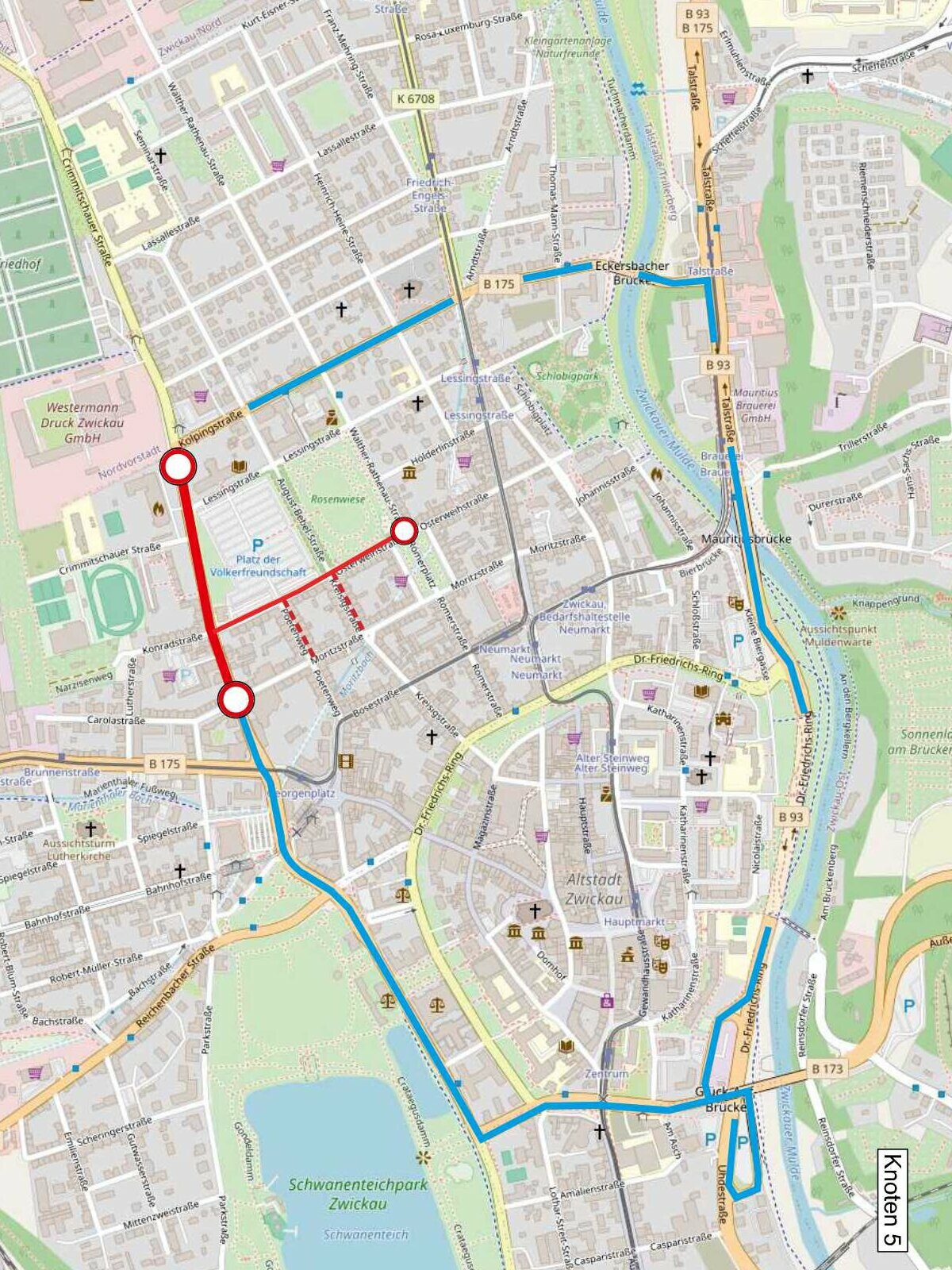 • Kreisigstraße zwischen Osterweihstraße und Moritzstraße: Sackgassenregelung
