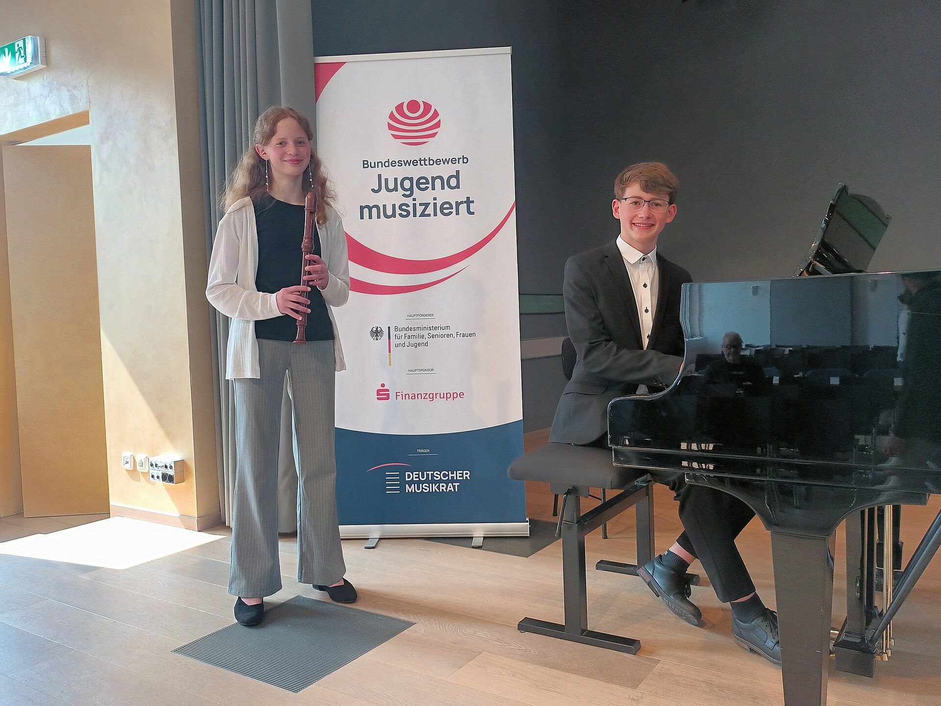 Charlotte Klotz und Johanna Klotz erspielten sich in der Kategorie Gitarren-Duo in der Altersgruppe V 23 Punkte und einen 2. Preis. Ella Paul (Blockflöte) und Timo Rößler (Klavier) erhielten in der Kategorie Duo: Klavier und ein Holzblasinstrument (Altersgruppe III) für ihr Vorspiel 22 Punkte und ebenfalls einen 2. Preis. In der Kategorie Duo: Klavier und ein Blechblasinstrument, Altersgruppe IV, erreichten Heinrich Bergert (Posaune) und Alena Solovyev (Klavier) mit 21 Punkten einen 3. Preis.