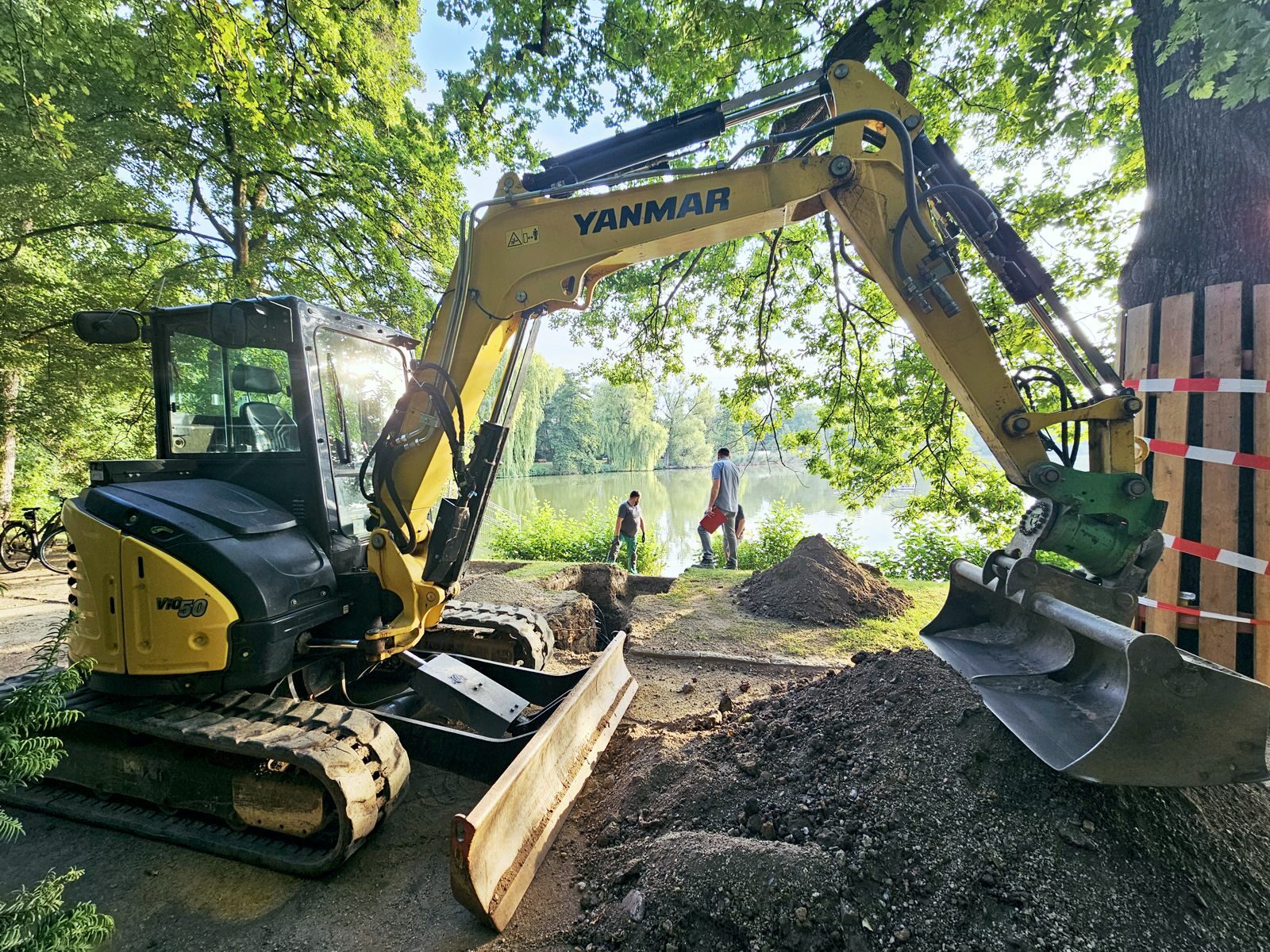 In dieser Woche haben planmäßig die Arbeiten zur Instandsetzung der Fontäne im Schwanenteichpark begonnen.