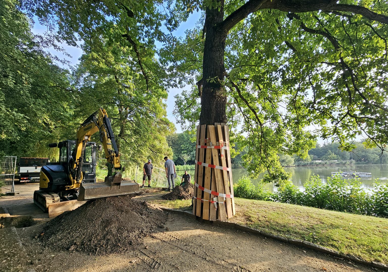 Es wird um Beachtung der kurzzeitig notwendigen Absperrungen von einzelnen Wegeabschnitten gebeten. Die Erreichbarkeit aller Einrichtungen im Park (u.a. Tiergehege, Bootsverleih, Cafébetrieb und Seesportklub) bleibt jederzeit gewährleistet. Während des Familienfestes ZWIKKIFAXX am 6. September werden die Arbeiten ruhen.