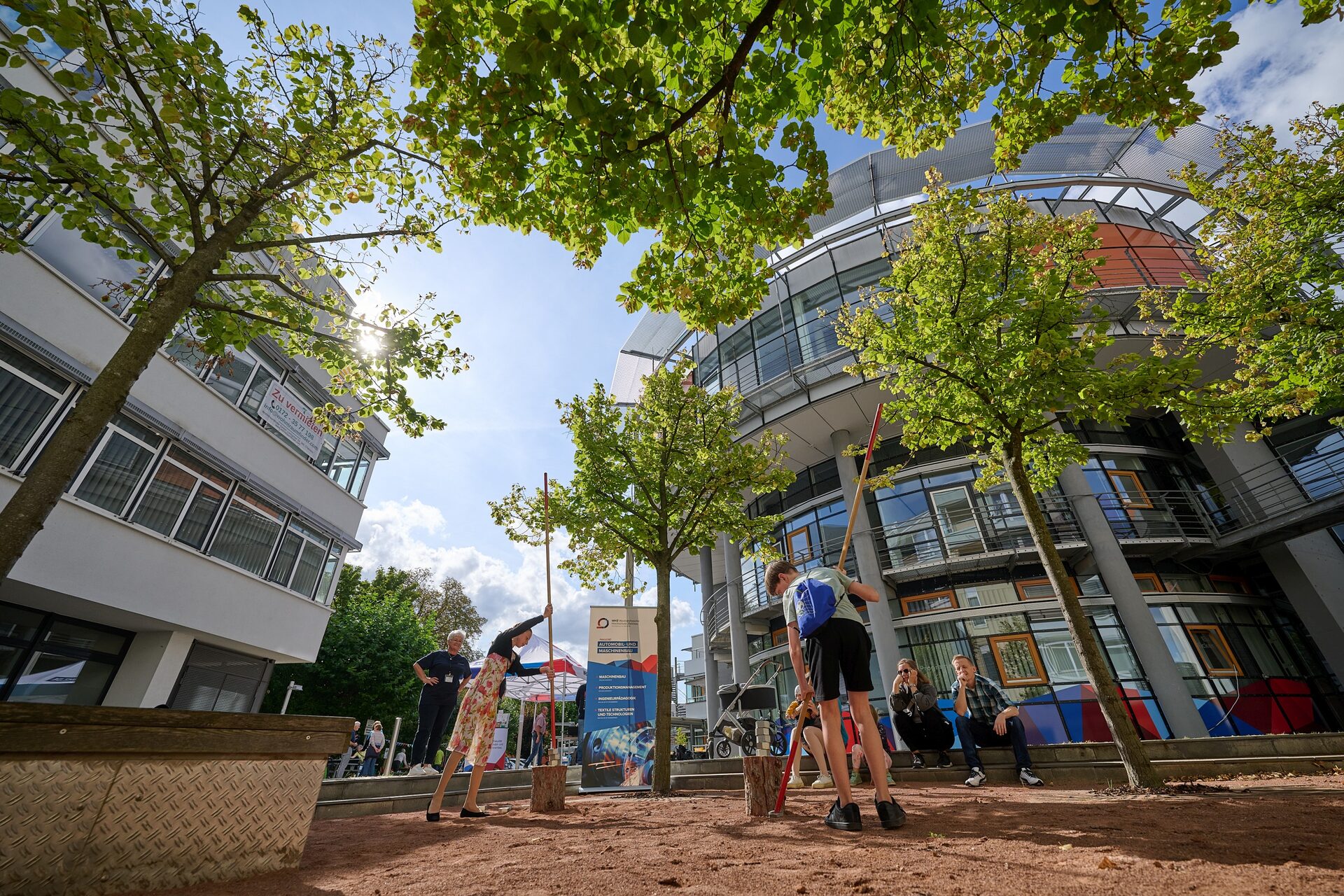 Die Westsächsische Hochschule war hinter dem Schüler-Lab am Dr.-Friedrichs-Ring u.a. mit dem Hochschulsport zu Gast. Außerdem ging es um die Frage wie und in welchem Umfang Robotik in der Pflege eingesetzt werden kann. Ebenfalls in diesem Hof war die Geschichtswerkstatt des Alten Gasometer e.V. mit ihrer Ausstellung Die tapferen Frauen in ihren knatternden Kisten zu erleben.