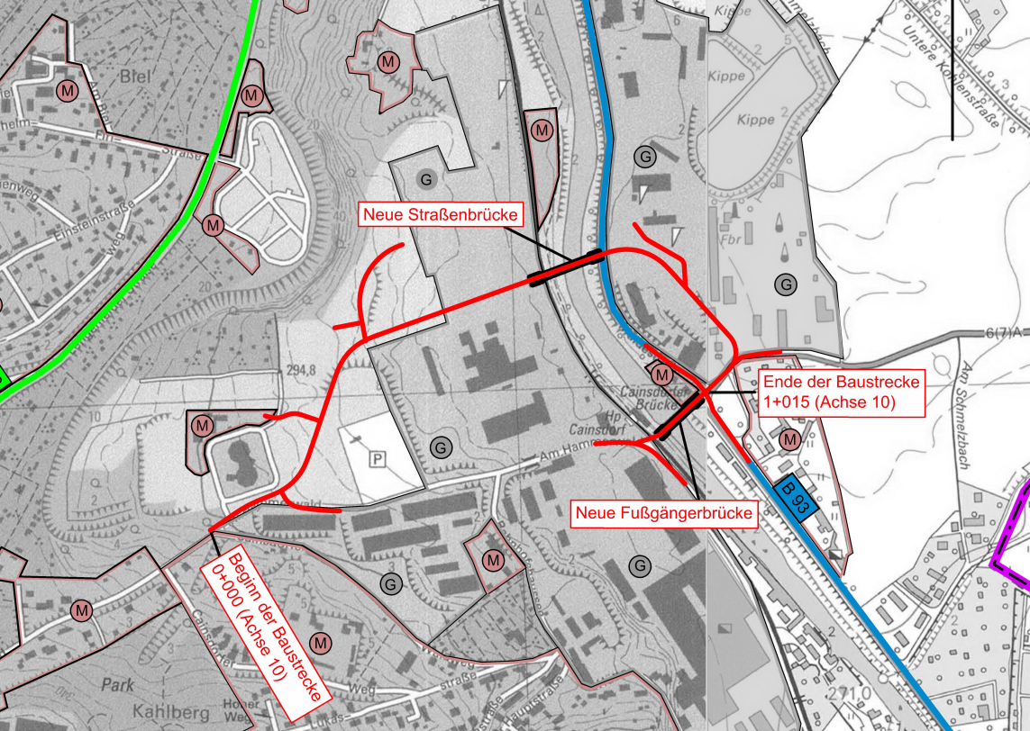 So ist der Trassenverlauf für die Cainsdorfer Brücke geplant.