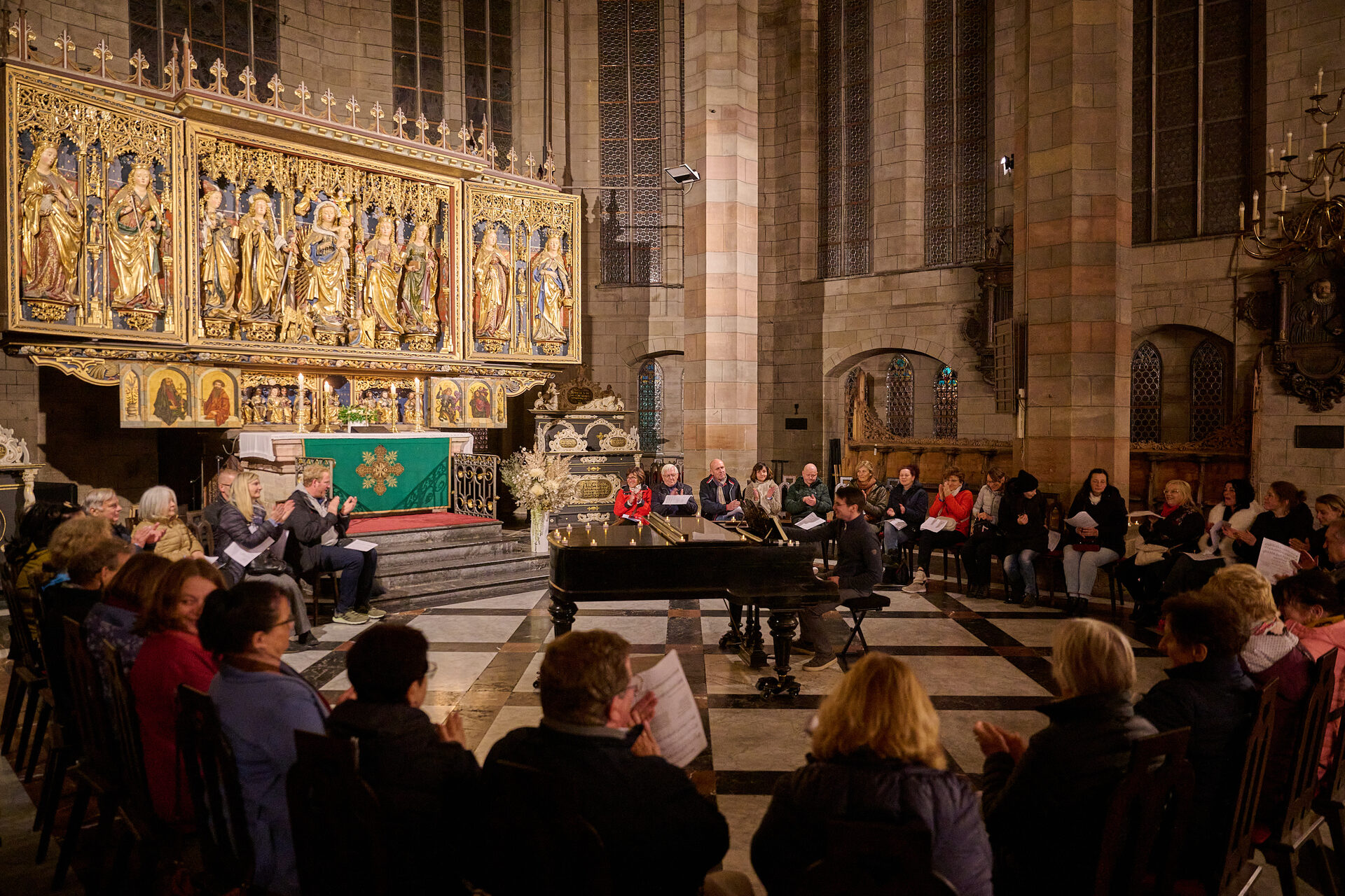 Den besinnlichen Gegenpart bot der Dom St. Marien – das passende Programm lud auch zum gemeinsamen Singen von Gute-Nacht-Liedern ein. Den Abschluss bildete eine nächtliche Führung zu den Grabstätten im Gotteshaus, zu der sich über 100 Gäste einfanden.