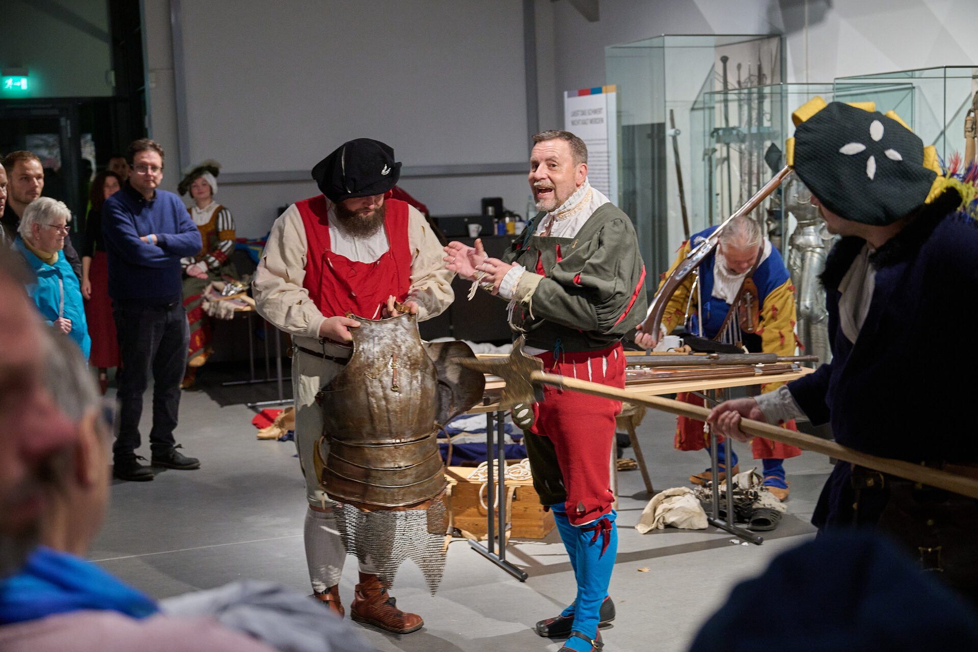 Wer an diesem Abend auf ein bisschen mehr Action aus war, fand in den mittelalterlichen Priesterhäusern den passenden Ort. Nicht nur die Sonderausstellung 1525. Bauern im Krieg entführte in ein Zeitalter voller Konflikte, sondern auch der Thüringer Ritterbund e.V., der über den Abend Vorführungen mittelalterlicher Kampfweisen darbot, zog das zahlreiche Publikum in seinen Bann.