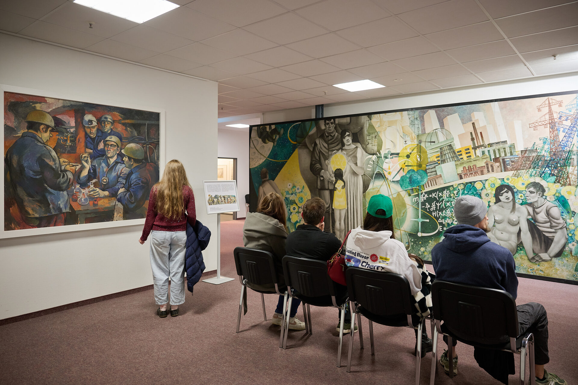 Unweit vom August Horch Museum entfernt, in der Alten Baumwollspinnerei, herrschte noch einmal reger Andrang in der Ausstellung Sonnensucher – Kunst und Bergbau der Wismut, die an diesem Wochenende das letzte Mal zu besichtigen ist. Ein Kurzfilm von Ramona Markstein (Kunstverein Zwickau e.V.) zeichnete das außergewöhnliche Ausstellungsprojekt nach.