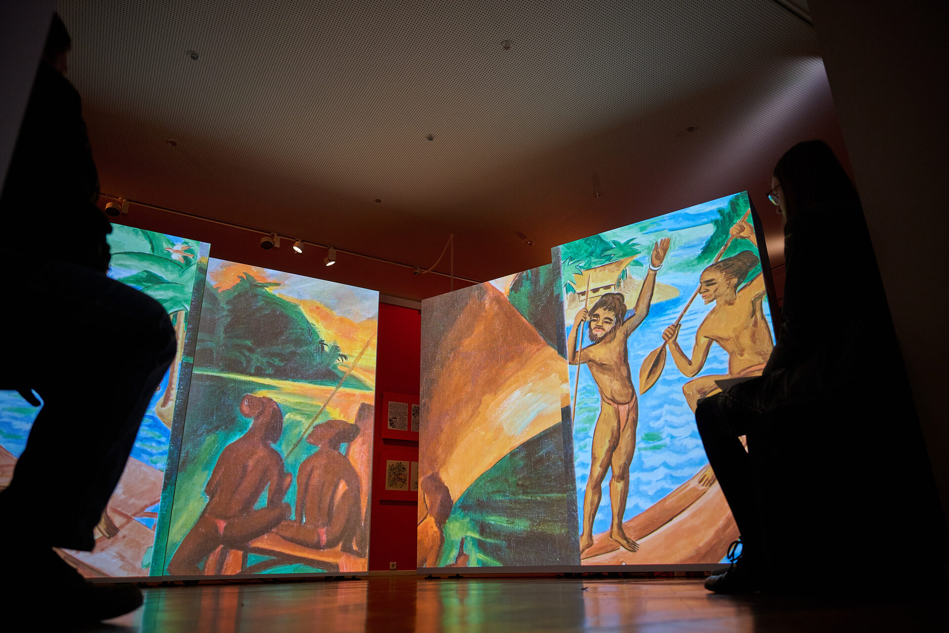 Gleich gegenüber im ZwischenRAUM der KUNSTSAMMLUNGEN ZWICKAU Max-Pechstein-Museum spielte in der aktuellen Sonderschau, Bodo Korsig. Gleichgewicht des Unsichtbaren, ebenfalls eine Kampfszene eine Rolle. Darüber hinaus gab es im Stundentakt Blitzführungen, die unterhaltsam und kurzweile verschiedene Werke der Dauerausstellung im FarbRAUM beleuchteten. Kreativ wurde es auch – Besucher konnten sich den Abend über in verschiedensten Techniken selbst einmal ausprobieren. Das kam besonders beim jungen Publikum an, denn in diesem Jahr waren auch viele kleine Besucher zu begrüßen.