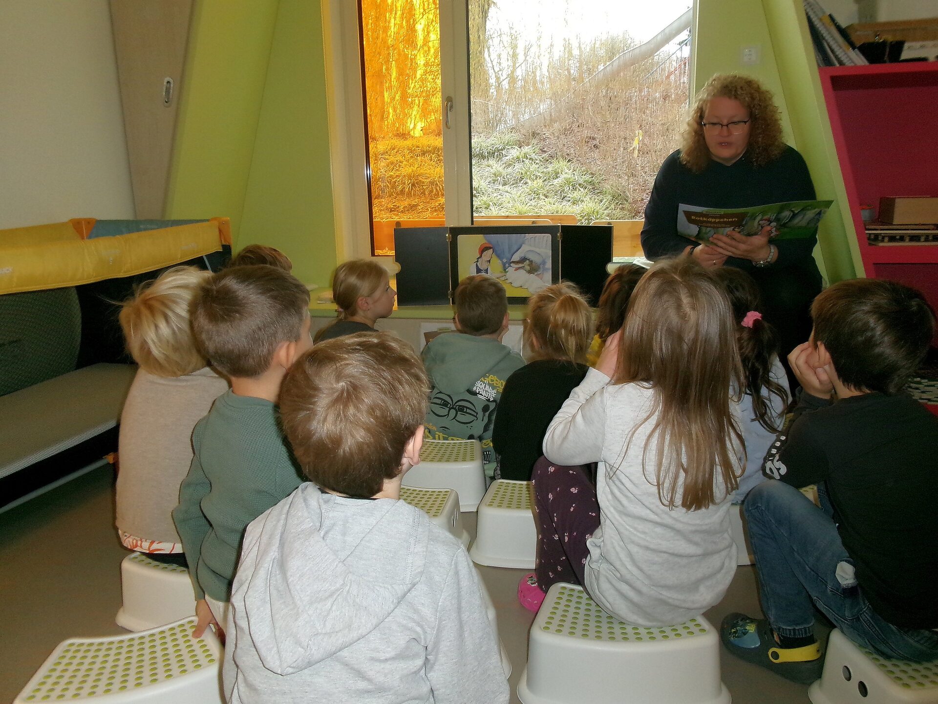 Er gilt als Deutschlands größtes Vorlesefest und möchte Kinder und Erwachsene für das Vorlesen begeistern: der Weltvorlesetag, der jährlich am dritten Freitag im November stattfindet. Grund genug für die Integrative Kita Marienhof diesen besonderen Anlass mit vielen bunten Stationen für die Kinder zu feiern. Es wurde ein Märchen-Kamishibai vorgelesen, eine Bewegungsgeschichte über einen Apfel erzählt und mitgeturnt und im Anschluss verkostet und Lesezeichen gebastelt. Vorlesepatin Manuela Hache stimmte die Kleinsten mit einer schönen Geschichte auf die bevorstehende Weihnachtszeit ein. Dank der tollen Mitarbeit der Eltern fand außerdem ein großer Bücherbasar statt: Jedes Kind hatte dafür mindestens ein nicht mehr benutztes Buch mitgebracht. Aus der so entstandenen „Sammlung“ konnte sich jedes Kind mindestens ein „neues“ Buch aussuchen und mit nach Hause nehmen.