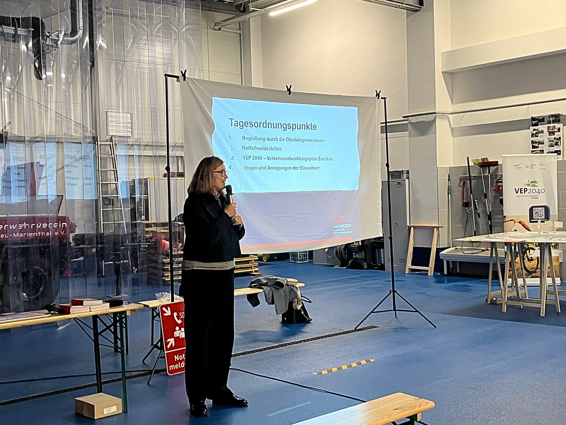 Rund 40 Personen begrüßte Oberbürgermeisterin Constance Arndt gestern Abend zu der Einwohnerversammlung in Marienthal. Im Gerätehaus der Freiwilligen Feuerwehr standen die Themen Notfallmeldestellen und Krisenvorsorge sowie der Verkehrsentwicklungsplan (VEP 2040) im Mittelpunkt. Daneben nutzten mehrere Bürger in den rund 1 ¼ Stunden die Möglichkeit, Fragen zu stellen.
