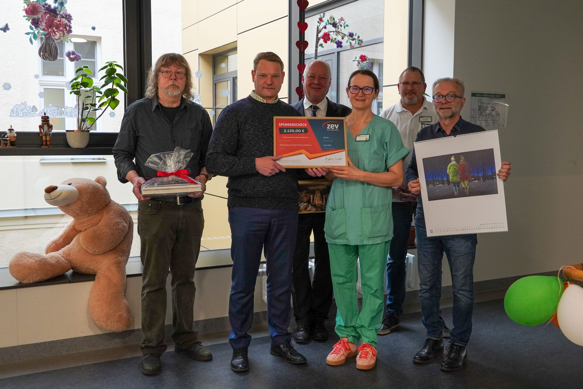 Im November präsentierten die Zwickauer Energieversorgung GmbH (ZEV) und der Kunstverein Zwickau e. V. den Kunstkalender 2026. Gleichzeitig konnte im Heinrich-Braun-Klinikum (HBK) die begleitende Ausstellung eröffnet werden. Im Rahmen der dazugehörigen „Herzensaktion“ überreichte die ZEV nun eine Spende in Höhe von 3.120 Euro an das Kinderzentrum des Klinikums.