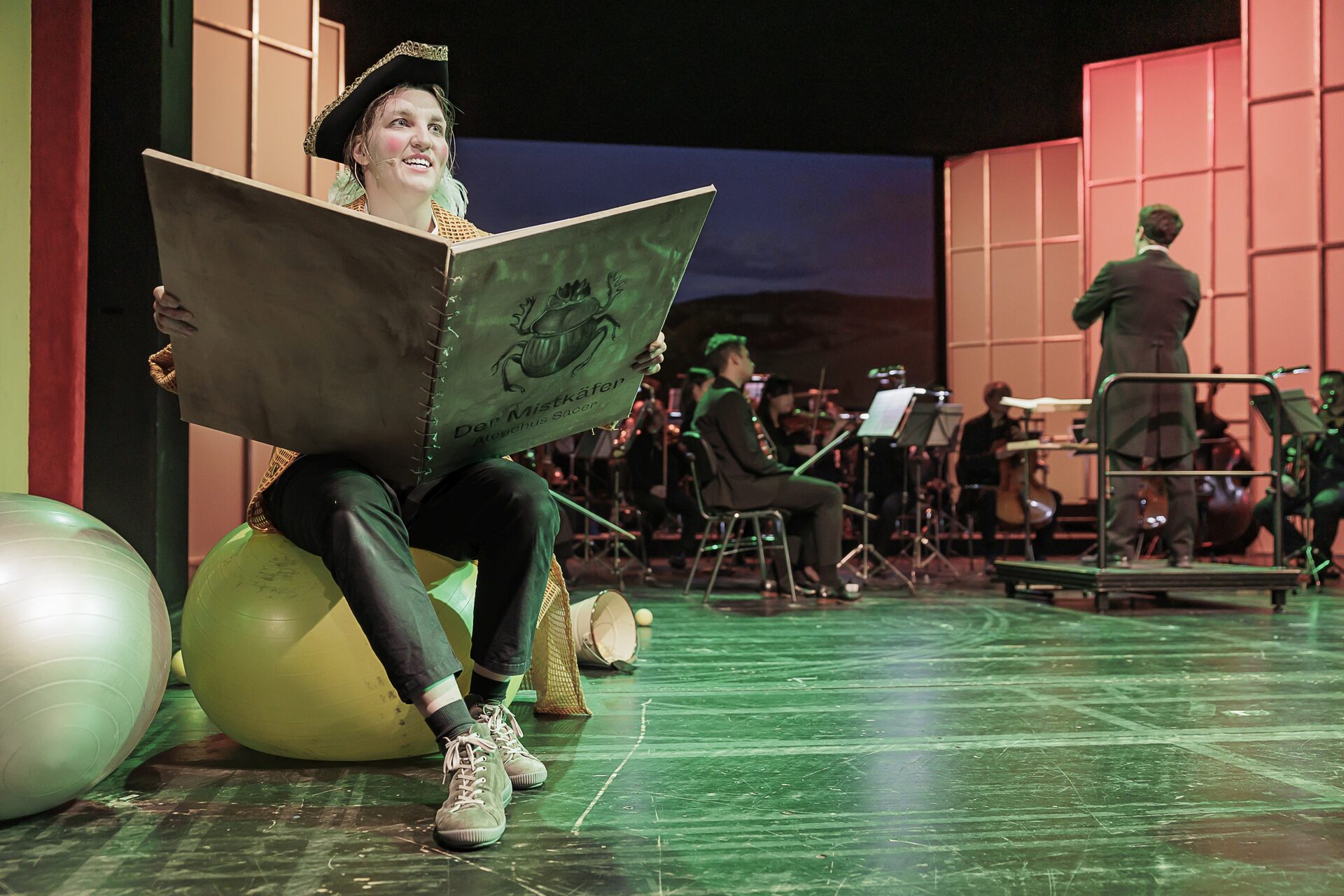 Zum Stück informiert das Theater: Der Mistkäfer aus dem kaiserlichen Reitstall hält sich für einzigartig und ehrenhaft. Als nur das Pferd goldene Hufe bekommt, ist er tief verletzt und geht beleidigt auf Weltreise. Die eigens für ihn komponierte Musik begleitet den kaiserlichen Mistkäferflug durchs Abenteuer und so ganz nebenbei lernt das Publikum die Instrumente des Kammerorchesters der Clara-Schumann-Philharmoniker unter Dionysis Pantis kennen. Dramaturgin Hanna Rüd tritt als Erzählerin auf die Bühne und begleitet die Zuschauerinnen und Zuschauer auf dem spielerischen Weg durch den Misthaufen, um dabei die Welt und Musik zu entdecken.