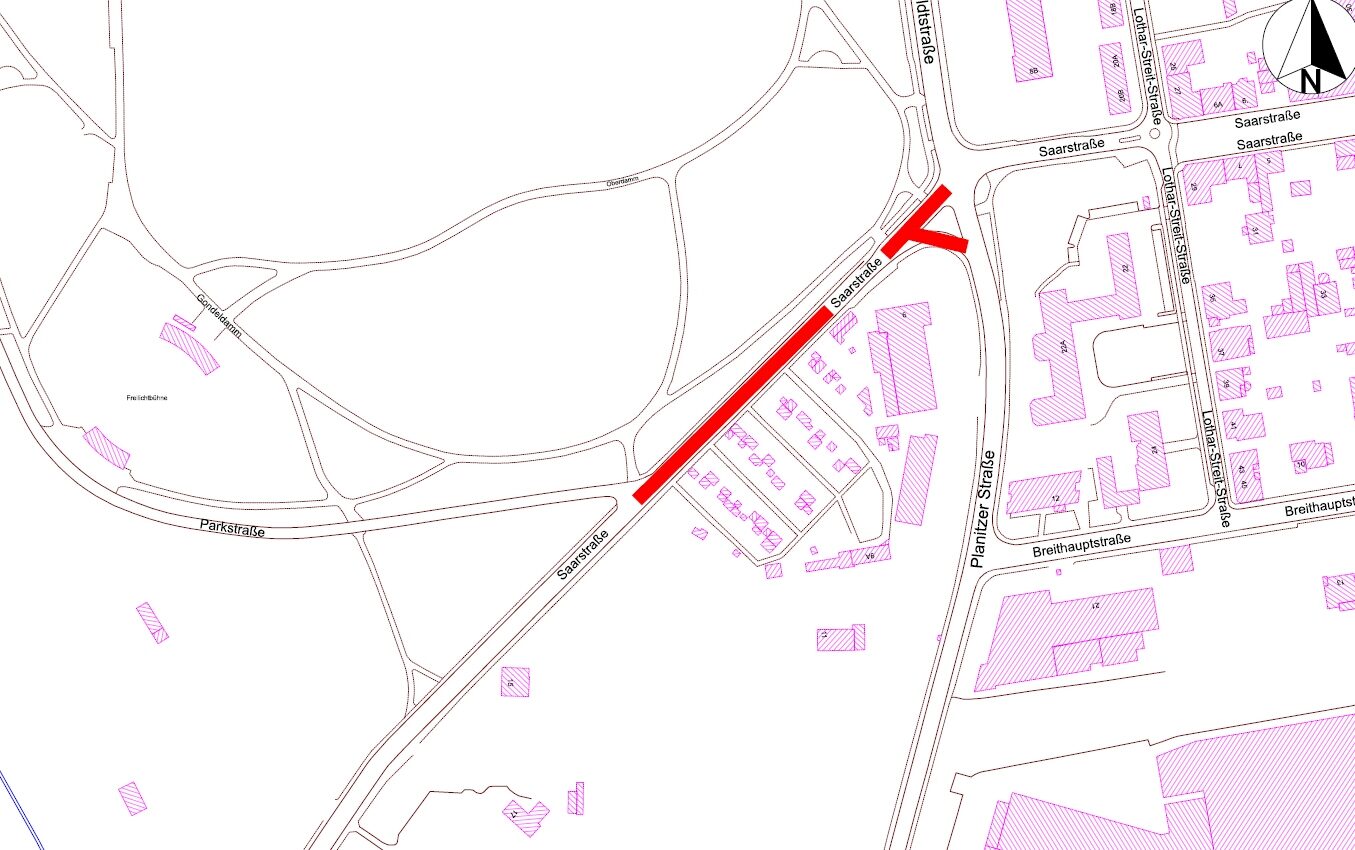 2.1. Vorhabenbeschluss - Fahrbahnerneuerung Saarstraße im Bereich zwischen Planitzer Straße und Parkstraße sowie Bereitstellung außerplanmäßiger Mittel