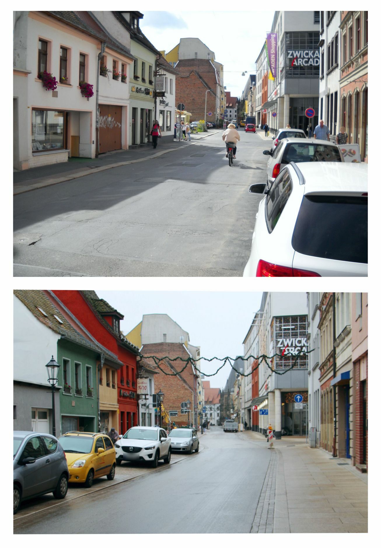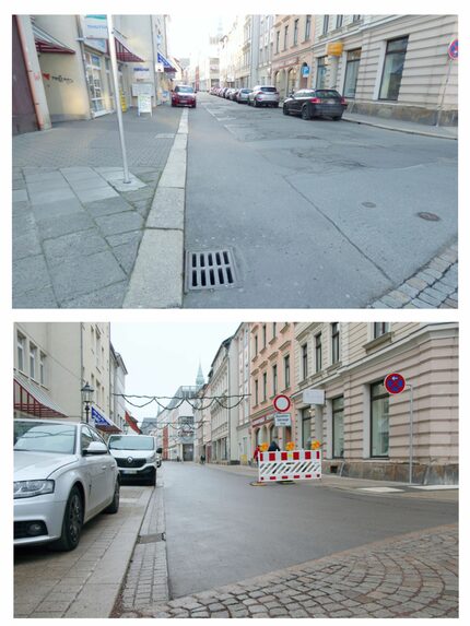 Der erste Bauabschnitt, vom Schumannplatz bis über die Lieferzufahrt der Zwickau-Arcaden, einschließlich Rosengäßchen, wurde zum 17.10.2021 fertig gestellt.