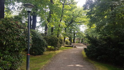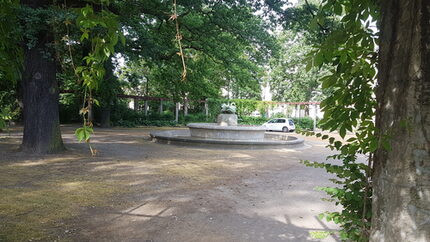 - Sanierung/Erneuerung des historischen Parkeingangs (formale Anlage) mit dem Schwanenbrunnen im Mittelpunkt