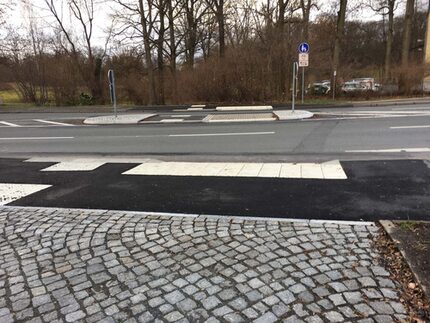 - Verbreiterung des Gehwegs an der Reichenbacher Straße zwischen der Querungshilfe und der Parkstraße um 1,0 m