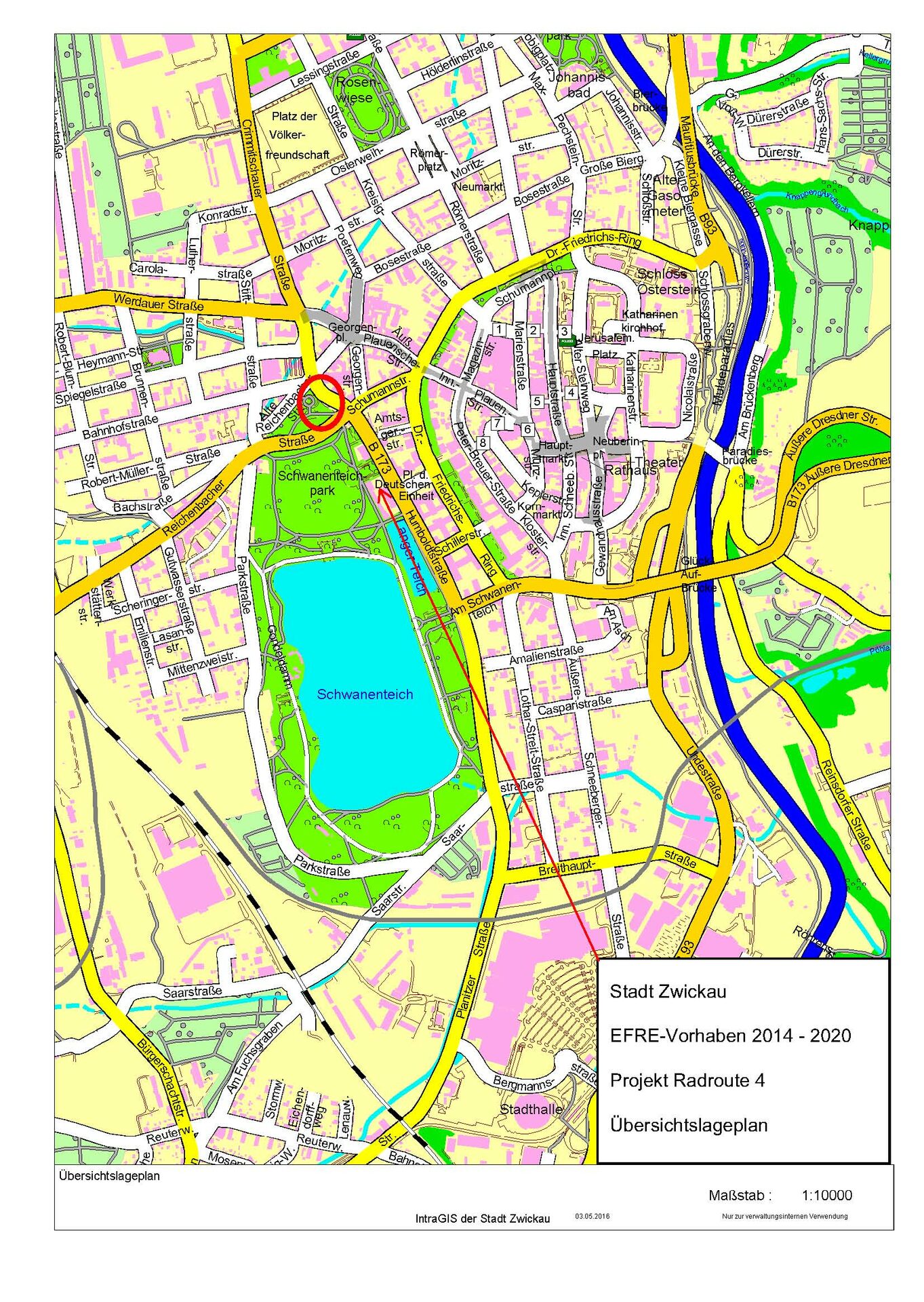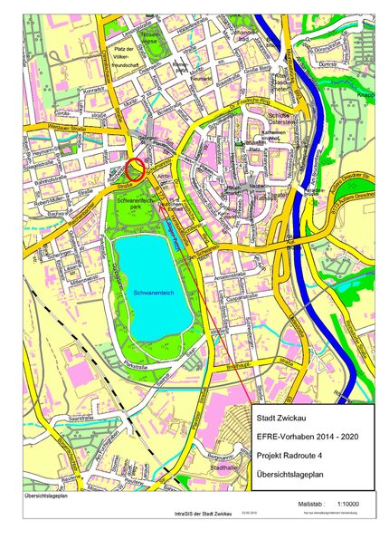 Der Ausbau der Radroute 4 verknüpft die beiden anderen Radverkehr-Anschlussprojekte zwischen der nördlich gelegenen Platzfläche – Projekt Radroute im Bereich der Zentralhaltestelle und dem südlich anschließenden Projekt Radroute 5 aus dem EFRE-Programm 2014 – 2020.