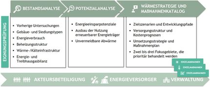 Die kommunale Wärmeplanung ist ein zentrales Instrument zur Erreichung der Klimaziele und zur Umstellung auf eine treibhausgasneutrale Wärmeversorgung. In Deutschland sind die Inhalte einer kommunalen Wärmeplanung sowohl durch die Kommunalrichtlinie (Teil der Nationalen Klimaschutzinitiative des BMUV) als auch durch das Wärmeplanungsgesetz (WPG) geregelt, das seit Anfang 2024 gilt. Diese lassen sich wie folgt kurz zusammenfassen:
