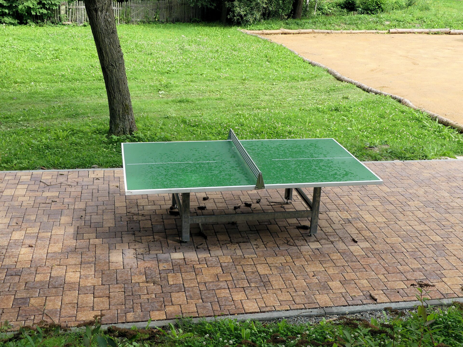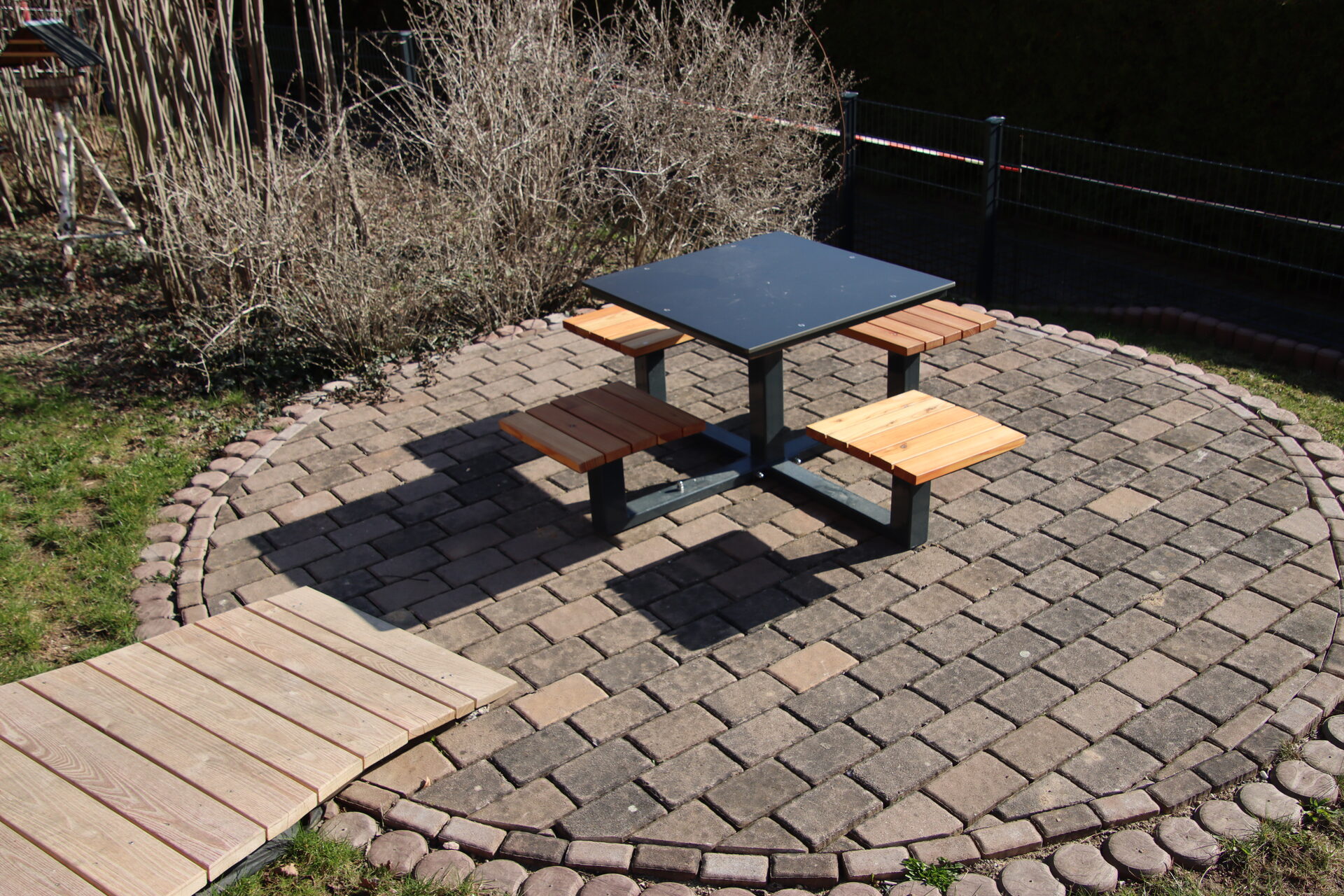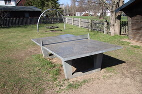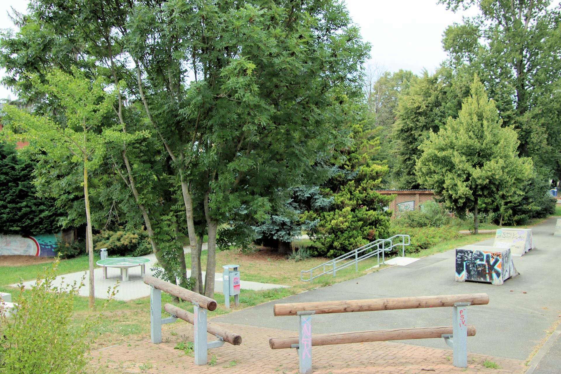 Sitzbalken und Skate-Elemente | runde Tischtennisplatte