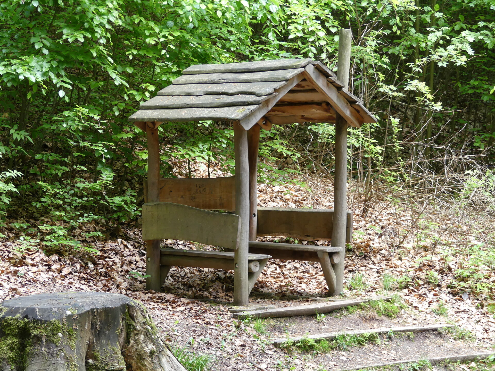 Schutzhütte | Bank | Granitsitzblöcke | Abfallbehälter