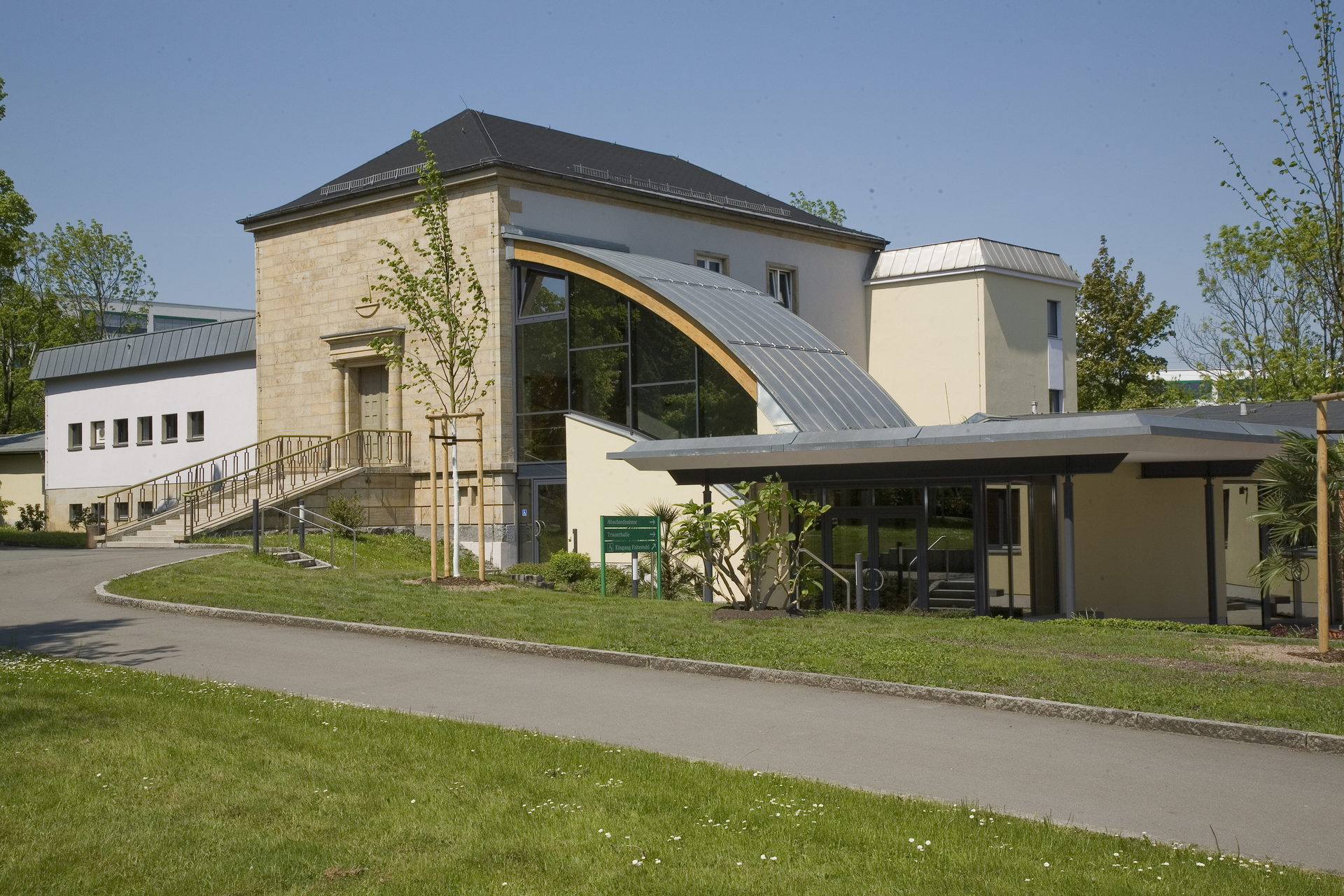 Trauerhalle auf dem Hauptfriedhof Zwickau – Außenansicht