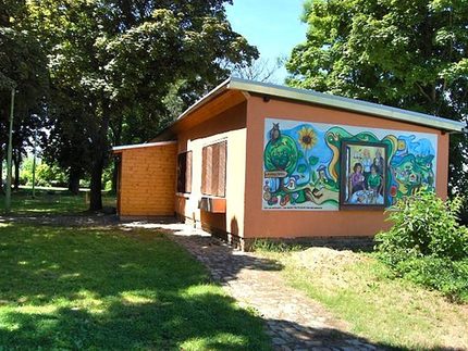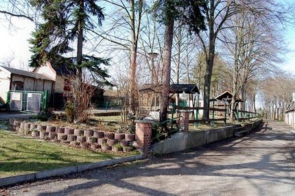 - mehrere Vereinsgebäude mit großer Freifläche, Picknicktische und einem Altbestand an Bäumen