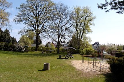 • großzügige Freifläche zum Verweilen mit vielen Altbäumen und Spielplatz