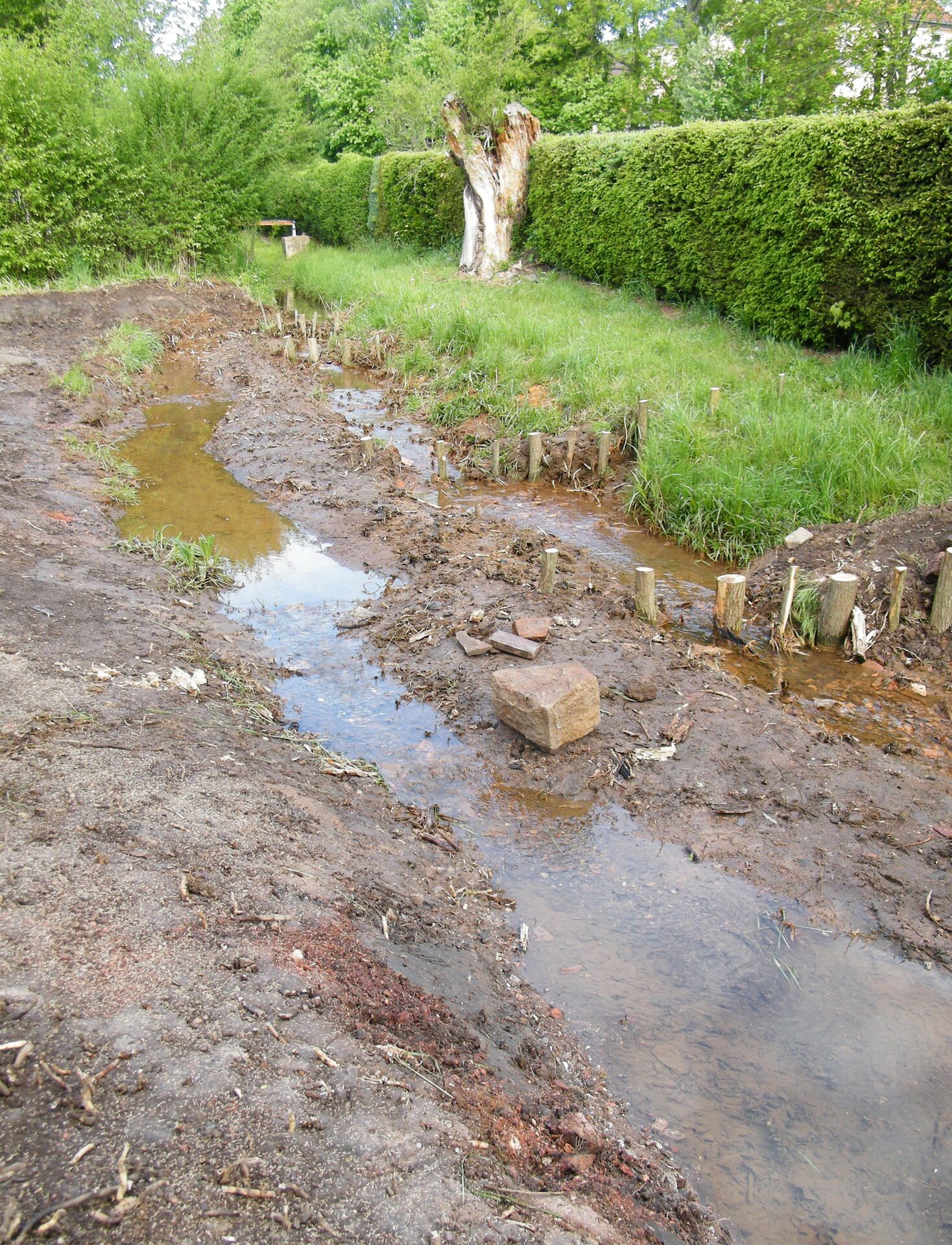 Nicht naturnah ausgebaute Gewässer sollen möglichst in einen naturgerechten Zustand zurückgeführt werden - Renaturierung.