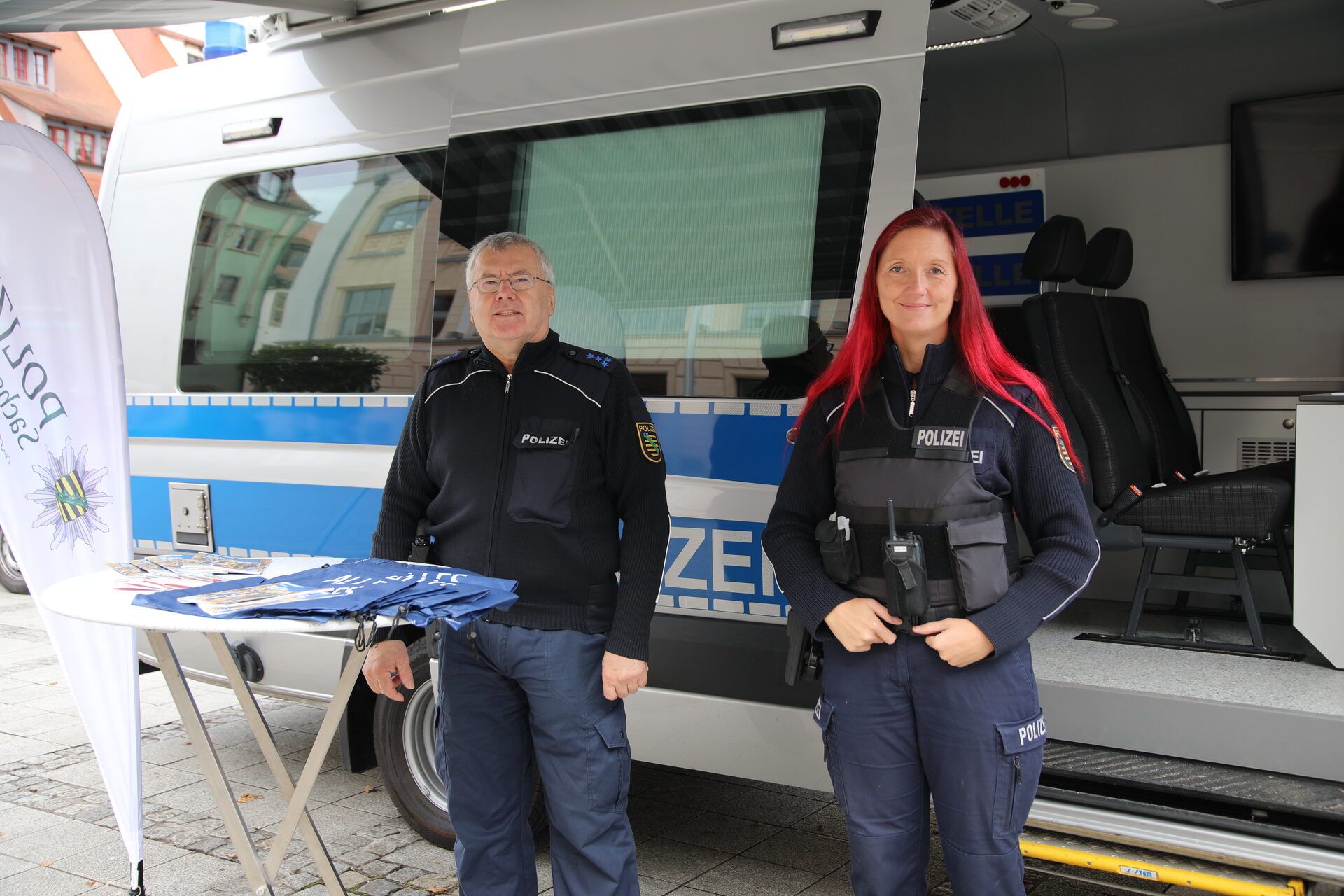 Unter dem Motto „Achtung Betrug“ fand am 4. Oktober bereits die zweite Veranstaltung zum Thema „Betrug, Enkeltrick und andere Abzocken“ im Rathaus Zwickau statt. Bürgerinnen und Bürger hatten die Möglichkeit, sich bei den Vorträgen und an den Informationsständen auf den neusten Stand bringen zu lassen. Der Informationstag war gut besucht, an den Informationsständen fand ein reger Austausch statt. Am Infomobil des Fachdienstes Prävention sorgten die zuständigen Bürgerpolizisten des Polizeirevier Zwickau im Bereich vor dem Rathaus für die erste Aufmerksamkeit und machten auf die Veranstaltung aufmerksam.