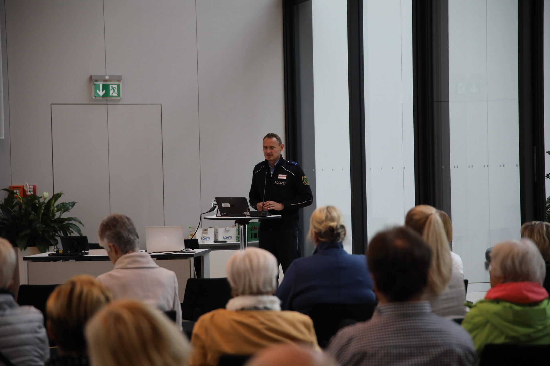 Im ersten Vortrag stellte Markus Meichsner vom Fachdienst Prävention eindrucksvoll die neusten Maschen vor und informierte rund um Telefonbetrug, Taschendiebstahl und Haustürbetrüger. „Bleiben Sie misstrauisch“, so der Appell der Polizei. „Geben Sie niemals Geld an Unbekannt und ziehen Sie eine Vertrauensperson hinzu.“ Im Zweifelsfall kann man sich immer an sein Polizeirevier oder die 110 wenden.
