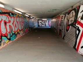 Vorhandene Beleuchtungsanlagen und/ oder Hinweisschilder/ technische Beschilderung in den Unterführungen dürfen nicht mit überstrichen oder übersprayt werden.