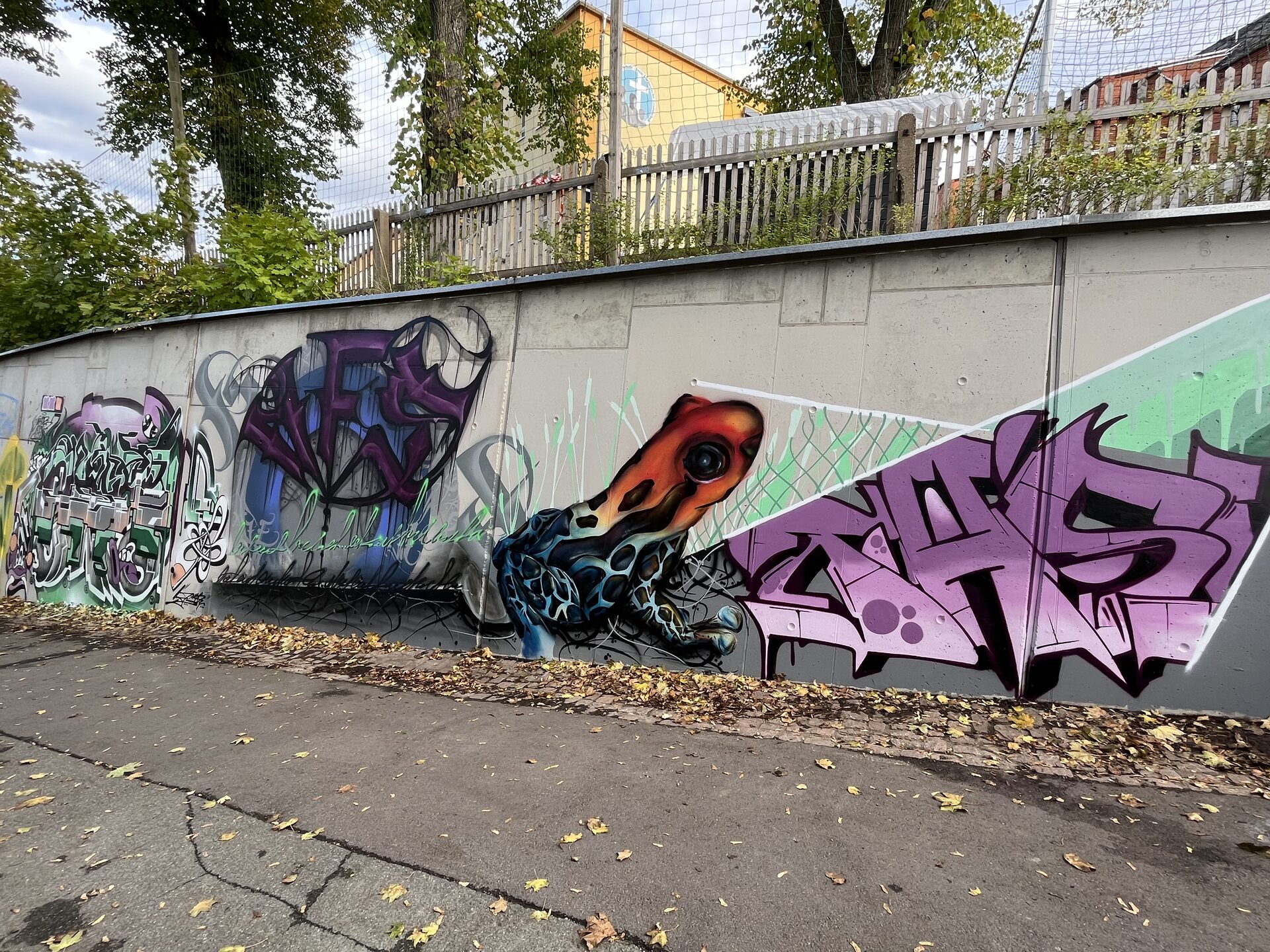 Die Stellewände auf dem Spielplatz an der Fucikschule sind seit vielen Jahren fürs öffentliche Graffiti freigegeben. Diese wurden nun in das Gesamtkonzept aufgenommen. Boden, Bäume, Skateelemente und weiteres Mobiliar sind nicht zu besprühen.
