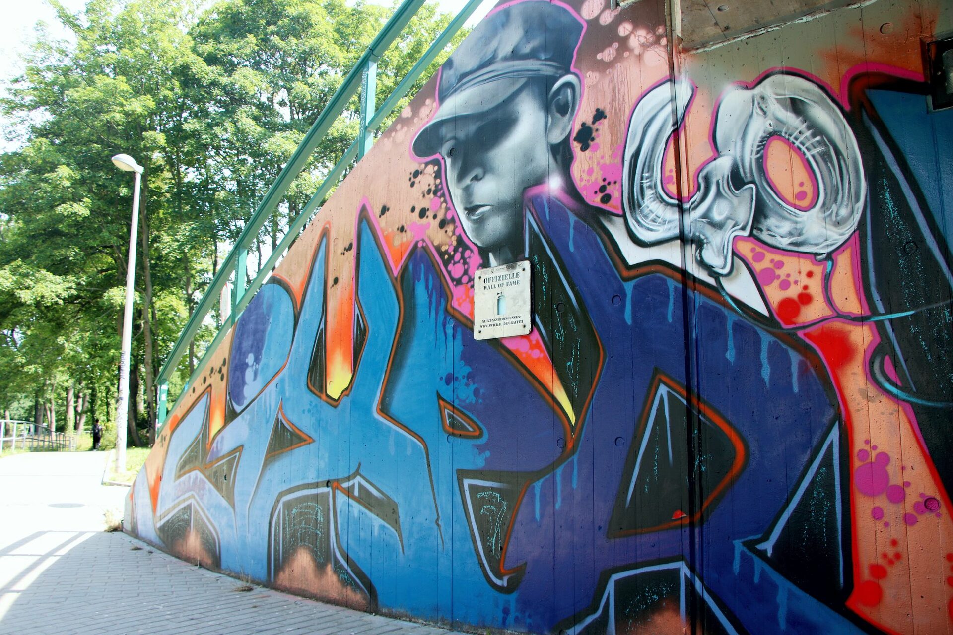 Die Betonwinkelelemente sind vom Skateplatz aus für das Sprühen freigegeben. Der Bereich der Modellrennstrecke darf nicht betreten werden! Boden, Bäume, Skateelemente und weiteres Mobiliar sind nicht zu besprühen.