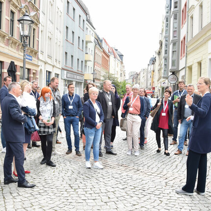 Jens Raußer, Leiter des Stadtplanungsamtes, stellte Ergebnisses des Architekturwettbewerbs EUROPAN zur Neugestaltung des östlichen Teils der Innenstadt vor. Einige der eingereichten und prämierten Entwürfe der jungen Architekten sahen den Rückbau der Elfgeschosser an der Mulde vor, was im Anschluss angeregt unter den Teilnehmern diskutiert wurde. Wohnungsmieter und -eigentümer müssen jedoch nicht befürchten, ihre Wohnungen kurzfristig zu verlieren, denn einerseits investieren Eigentümer wie die GGZ aktuell in die Instandhaltung der Gebäude, andererseits sind stadtplanerischen Veränderungen dieses Ausmaßes grundsätzlich langfristig zu betrachten, verdeutlichte der Amtsleiter.