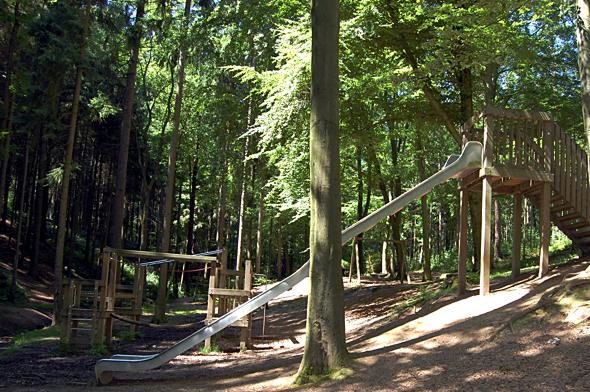 Den ersten Waldturnplatz errichtete man 1970 am Rappenbach. 1991 wurde die Anlage entfernt, da sie zunehmend verfallen war. Jetzt steht hier ein Abenteuerspielplatz, auf dem die Kinder umgeben von schöner Natur aktiv sein können. Geräteangebot: Seilbahn, Vogelnestschaukel, Drehscheibe, Kletterkombination mit Seilanbauten und eine extra breite und lange Rutsche.