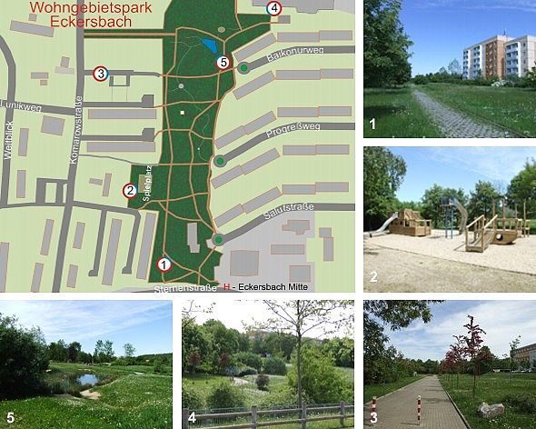 Im Zuge der Wohnbebauung und Sanierung wurden auch in den Stadtteilen außerhalb des Zentrums Parkanlagen mit Grünflächen und Spielplätzen eingerichtet.