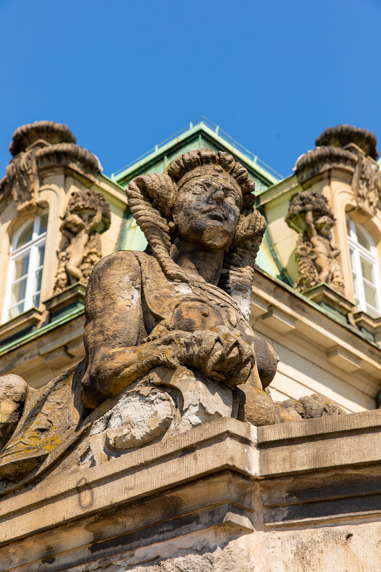 Wohnen. Innere Raumstrukturen mit dem zentral gelegenen ovalen Wohnraum werden nach außen durch einen kupferbedeckten Kuppelbau bekrönt. Bemerkenswert ist auch die im Hochparterre gelegene, einst gärtnerisch genutzte große Terrasse mit Balustrade.