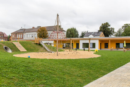 Im neuen Hort gibt es 200 Plätze für Schüler der Klassenstufen 1 bis 4. Die Hortanlage wurde als eingeschossiger Holzrahmenbau in Eckbauweise mit einer Fläche von ca. 1500 m² errichtet und ist zudem barrierefrei zugänglich. Sie verfügt außerdem über einen 2800 m² großen Außenbereich, der zum Toben, Spielen und Entdecken einlädt.