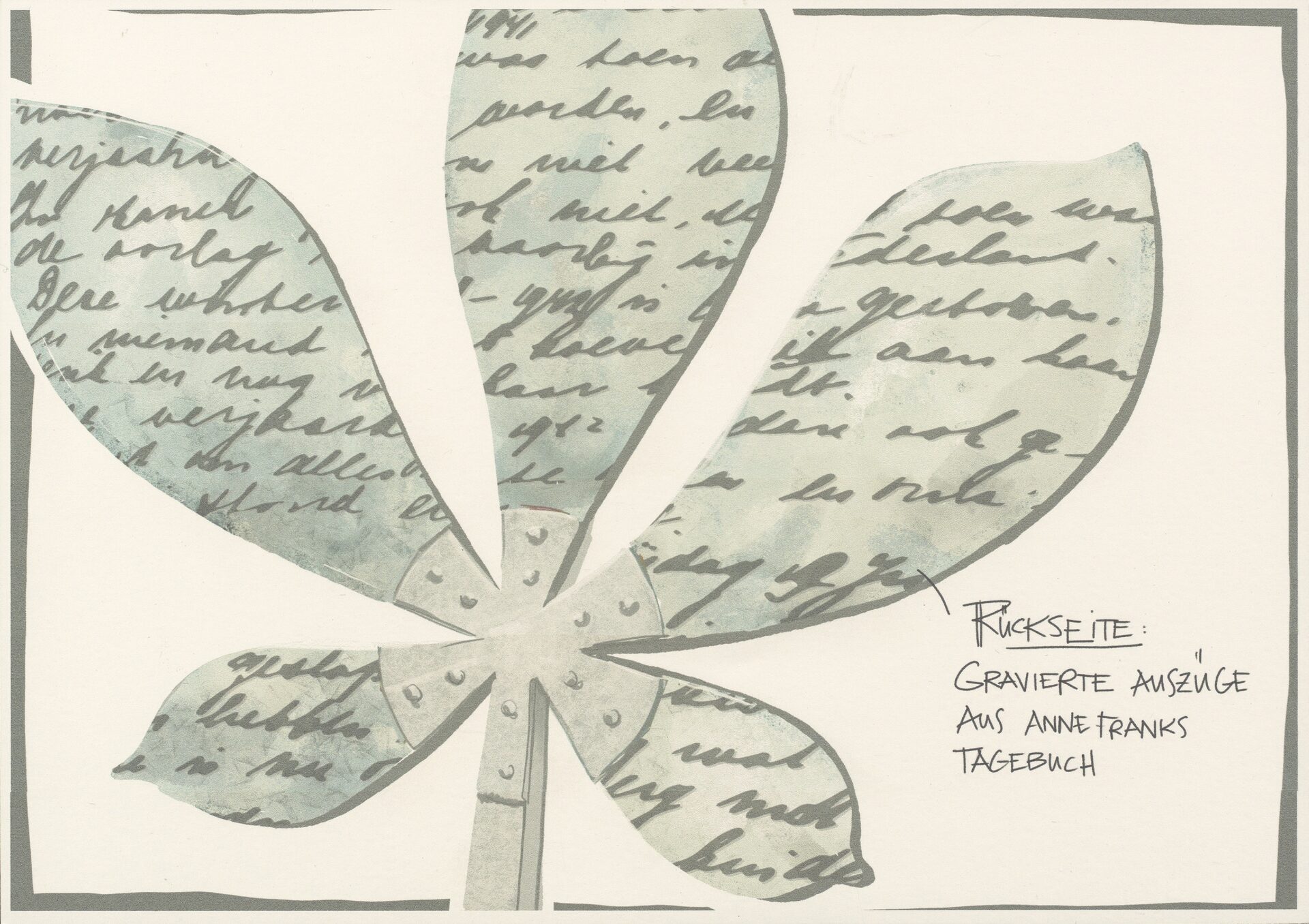„[…]Innerhalb ihrer Jahre des Versteckens, blickte sie (Anne Frank, Anm. d. Red.) durch ein Fenster auf einen der ältesten Kastanienbäume der Stadt. Zeit wurde hierdurch in Jahreszeiten gemessen. Immer wieder beschreibt sie sehr detailliert diesen symbolträchtigen Baum und das Treiben rundherum…“