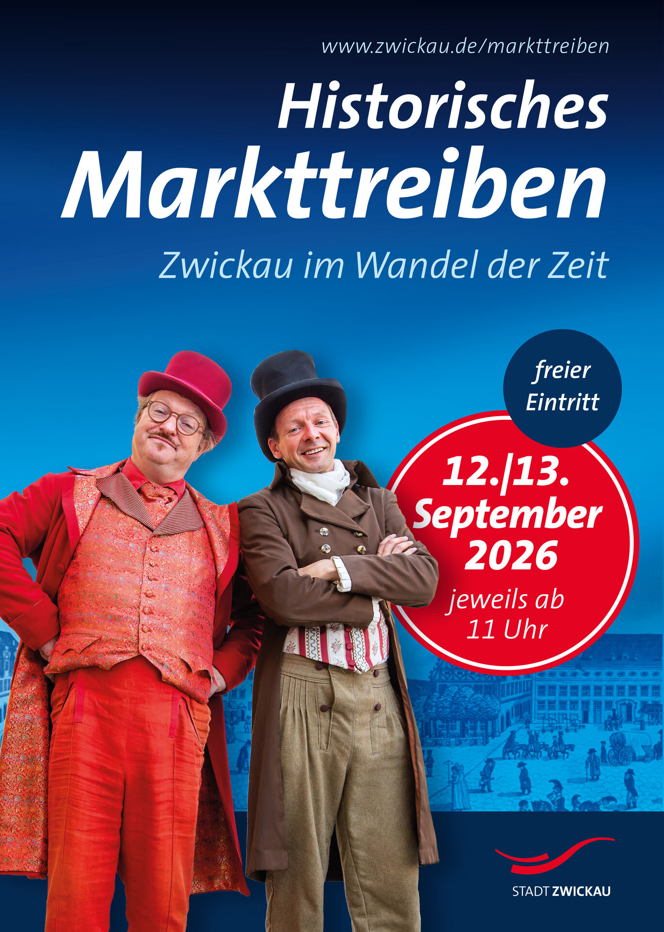 Das „Historische Markttreiben – Zwickau im Wandel der Zeit“ in Zwickau hat eine lange Tradition. Bereits seit 1994 findet die inzwischen bei allen Generationen beliebte Veranstaltung am zweiten Septemberwochenende in Verbindung mit dem Tag des offenen Denkmals statt. Der nächste Termin für das Markttreiben ist der 12./13. September 2026.